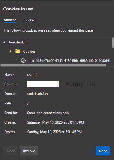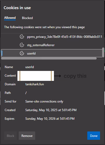 Step 5: Locate the userId cookie.
